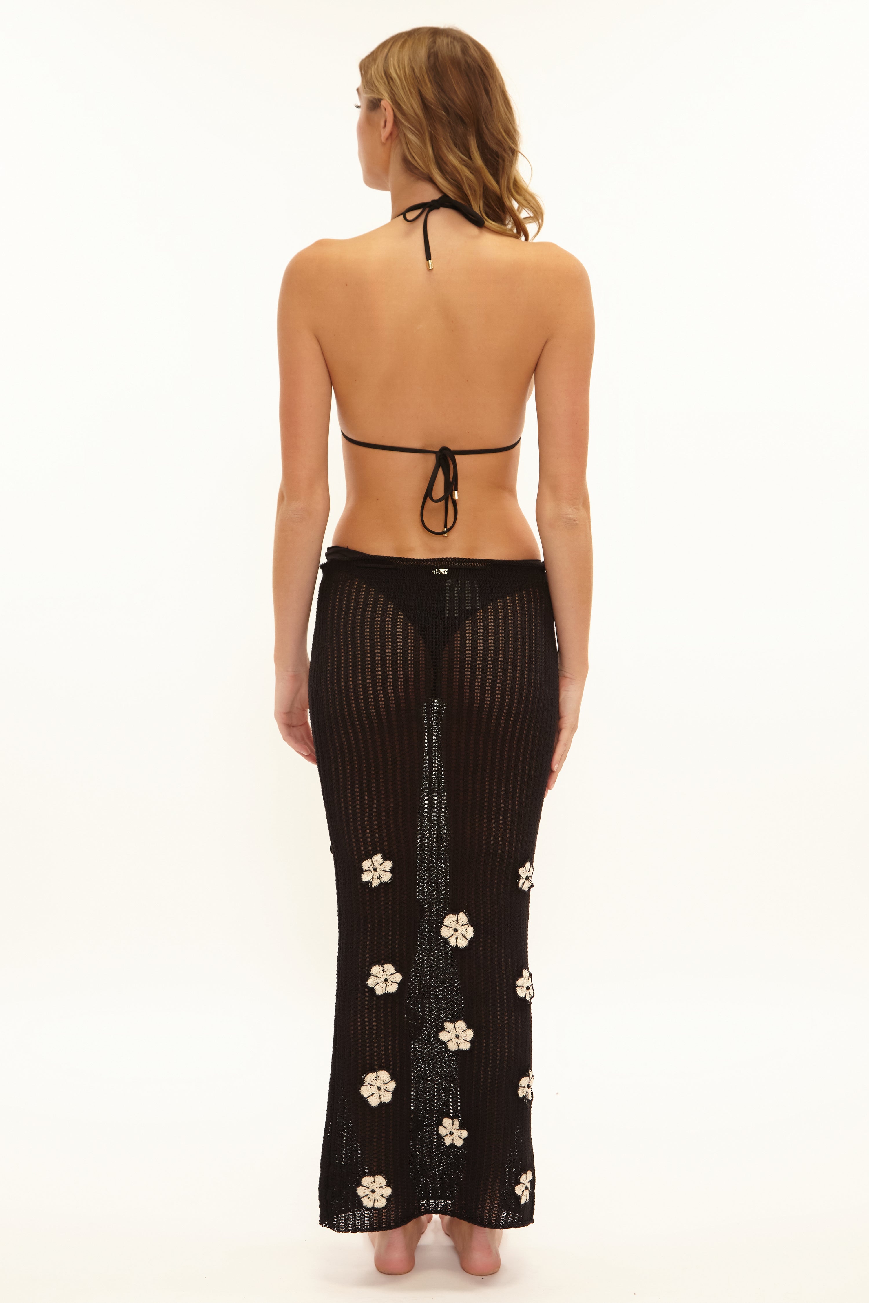 The Cyrus Maxi Skirt brings breezy, bohemian elegance to your beach-to-brunch wardrobe. Crafted from soft, hand-crocheted knit, this high-rise skirt hugs your hips and flares into a relaxed, flowy silhouette. Scattered contrast-trim florals add a playful pop, tying the look together with the rest of the Cyrus collection.