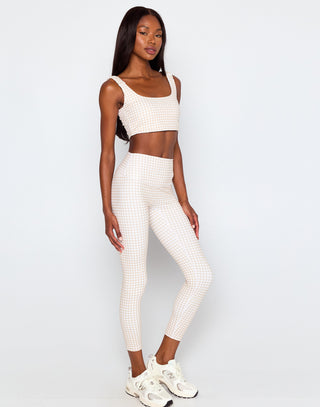 A classic silhouette meets charming style in the Olivia Bra Tank. This soft beige gingham print top is designed with a square neckline and wide straps for a flattering fit that supports movement with ease.