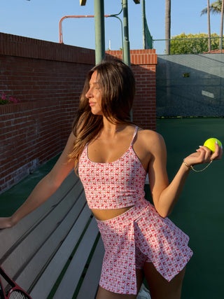 Flirty, fun, and full of attitude — the Sweet Tart Crop Tank is your new go-to for sunny days and weekend adventures. Featuring a soft pink and red cherry print, this form-fitting top is made with stretch fabric and dainty spaghetti straps for an effortless, barely-there feel.